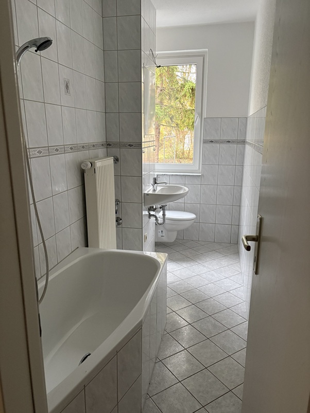 Sie liegt im Erdgeschoss und ist mit einer Badewanne ausgestattet. Das Objekt ist saniert.